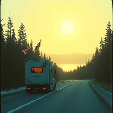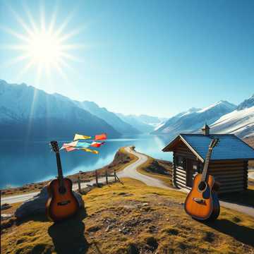 Uplifting Norwegian pop, energetic, brass, danceable beat, female voice, roadtripmusic feeling, fjords, freedom