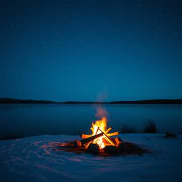 Finnish folk ballad, gentle female vocals, acoustic guitar, kantele, soft harmonies, sounds like a campfire by a northern lake under the stars, a little melancholic and full of longing, lyrics about night, love, friends, and the silence of nature