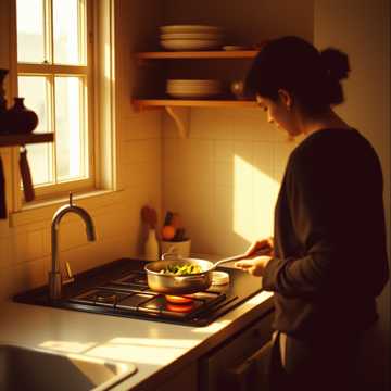 Warm bossa nova with female vocals; nylon-string guitar and soft brush kit set a relaxed kitchen groove, Upright bass walks gently, Rhodes chords bloom on the chorus, Subtle flute doubles the hook, background “doo-dahs” in the refrain, Intimate, close-mic vocal, like humming to yourself while you cook, bossa nova, vocal