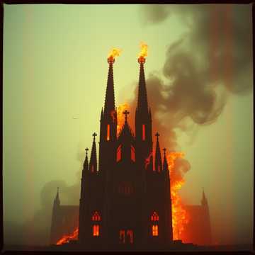 Dark Gothic orchestral battle theme, Thundering pipe organ, relentless war drums, shrieking violins, and infernal choirs create a chaotic, fire-laden battlefield drenched in madness and hellfire