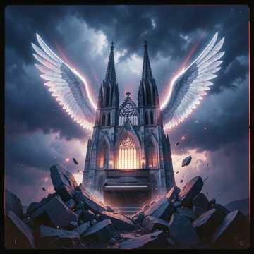 A dramatic and cinematic symphonic rock ballad featuring a powerful female vocal, The arrangement begins with a somber, atmospheric piano and orchestral strings, building into a grand, high-energy rock anthem with distorted electric guitars, driving drums, and a full choir, The vocal performance is highly emotional, utilizing wide dynamic ranges from soft, breathy verses to soaring, operatic belts in the chorus, The tempo is a slow, deliberate 4/4 time, approximately 70 BPM, in a minor key, Production is lush and expansive, with heavy reverb on the vocals and a wide stereo field for the orchestral elements, The structure follows a traditional build from a quiet intro to a climactic, wall-of-sound finale featuring tolling bells and choral layers