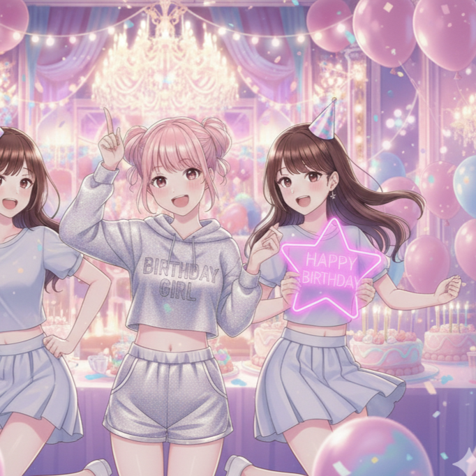 J-pop, idol pop, cute female vocal, upbeat, cheerful, synth-pop, bright, kawaii, sparkling