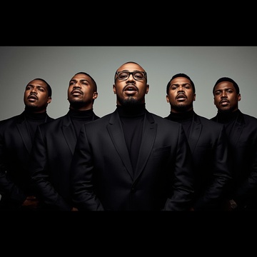 black male R&B 90-100 bpm has R&B group vocals with lots of background singing in the Bridge and Climax