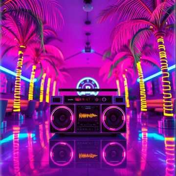 Retro Miami dancefloor instrumental, funk-influenced bass, simple drum machine loops, 1980s club vibe, warm analog synths, energetic but light low end