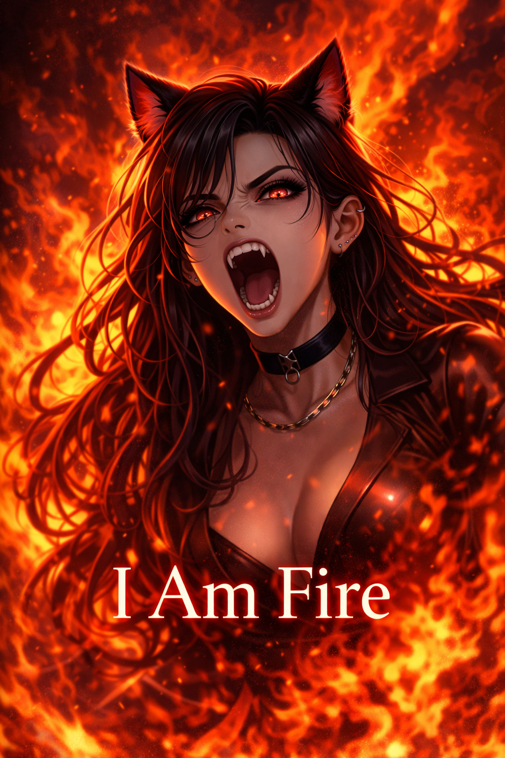 Languid, sultry female vocals with a slightly husky, seductive tone, building tension from muted verses to explosive chorus, Lush synths, layered pads, heartbeat-patterned drums, and light orchestral strings drive the intensity, Alternative rock-inspired electric guitar stabs and subtle percussion enhance the climax, Verses restrained and intimate, pre-chorus rising in tension, chorus bursting with "I am fire", Bridge features minimal instruments, airy pads, and echoing vocal textures, Final chorus echoes fade, leaving lingering atmospheric resonance, Emphasize dynamic build-up, sultry allure, and dramatic, fiery climax, Tempo ~88-92 BPM, cinematic, empowering, and intense