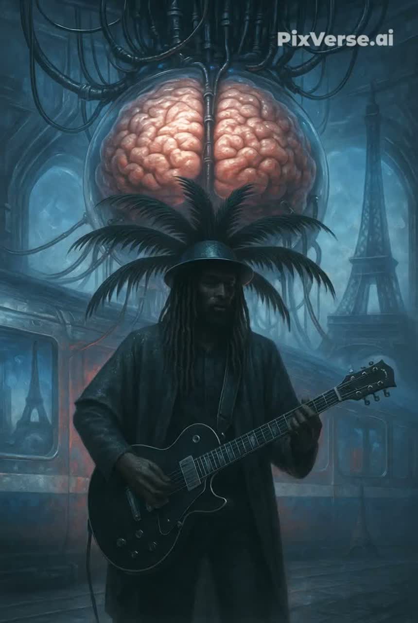 trip-hop, reggae, brostep, metalcore, heavy synth, hard riffs, psychedelic, experimental, deep rough male voice (bass), deep bass, adlibs, crisp sound, proper production, french