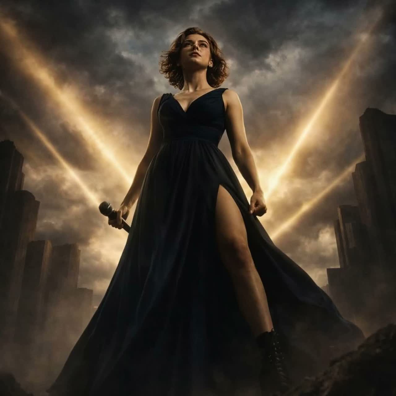A monumental heavy metal track led by a unique female voice blending operatic highs and guttural growls, The production is raw and aggressive: distorted guitars and saturated bass drive the song, with martial drums and minimal choral textures, Orchestral layers are stripped back, used only for dramatic impact, while glitch and industrial effects add menace and grit, Every rhythm is relentless, every passage focused on tension and heaviness, The mix is dry, percussive, and foregrounds the voice without softening its edge, The result is a heavy/doom metal possession—addictive, immersive, and unyielding, ‑electronic, ‑industrial, ‑modern pop, ‑hip-hop, ‑duet vocals, ‑guest vocals, ‑dialogue, ‑male vocals, ‑external harmonies, ‑comic or ironic tone, ‑modern language, ‑sound design, ‑SFX, ‑noise, ‑glitches