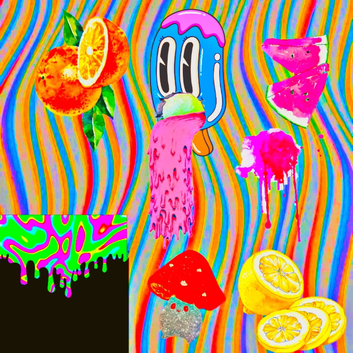 psychedelic boom-bap, neon cartoon hip-hop, colorful candy-acid vibes, smooth melted synths, warm wobbling bass, crunchy vinyl drums, REDTAGGO signature scratches, playful percussion, shimmering toy-piano melodies, liquid pad swells, soft reversed chimes, bright fruity atmosphere, vibrant fun surreal dreamlike, euphoric and wavy (98 BPM)