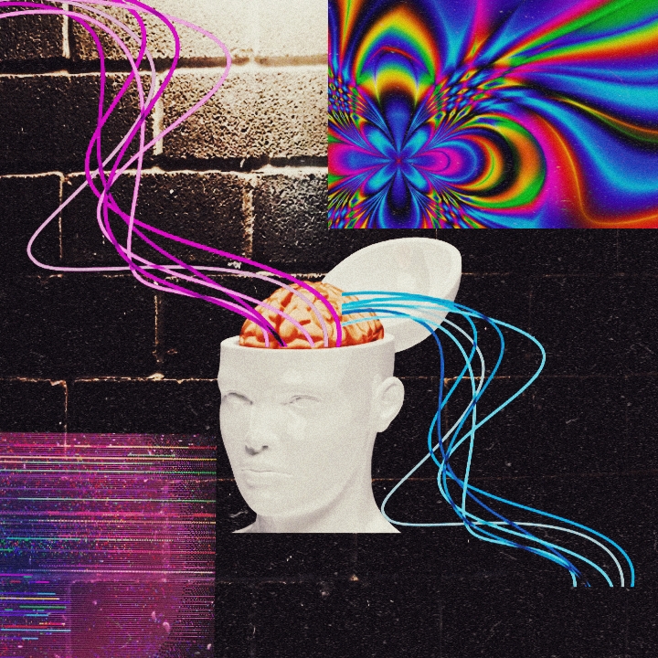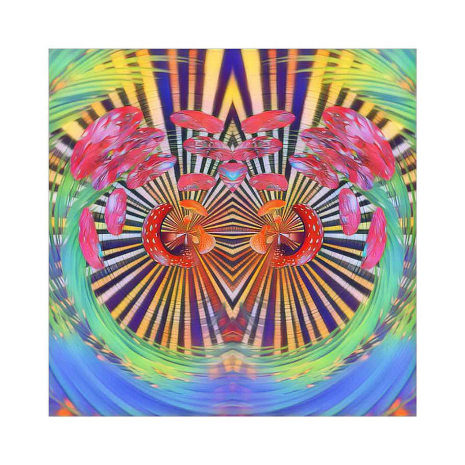 “Psychedelic hip-hop / funk fusion with swirling synths, distorted basslines, and trippy phaser effects, Add groovy drum patterns (90–95 BPM), spacey echo layers, and acid-soaked guitar riffs, Should feel hypnotic, colorful, and chaotic — like dancing in a neon oil-slick dreamscape, ”