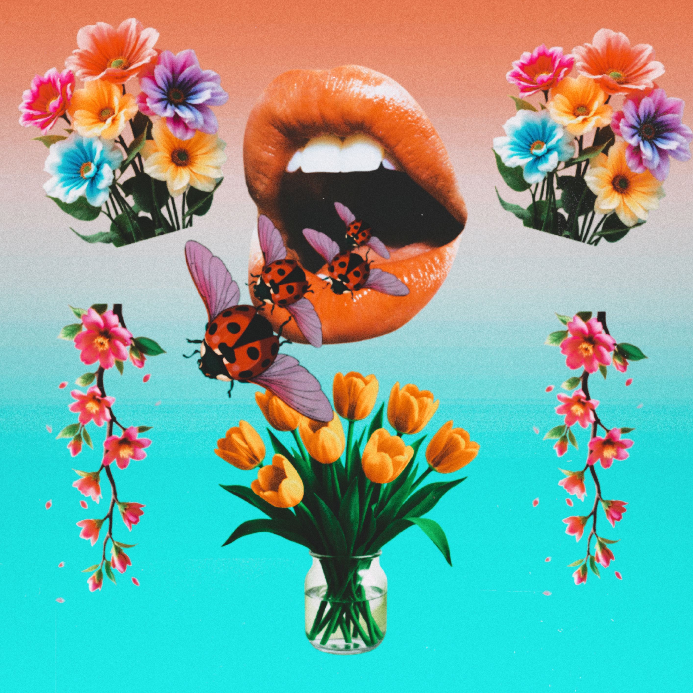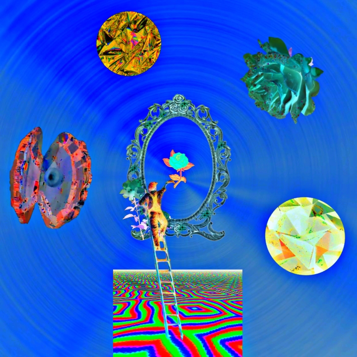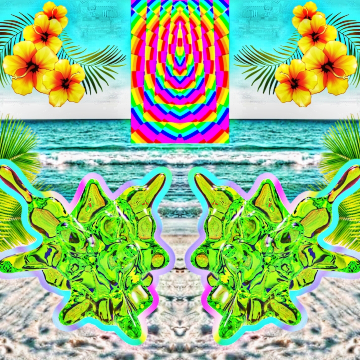 Psychedelic electro-groove track with a structured vocal performance, Tempo around 112–116 BPM, Use retro drum machines (707/808) with a funky, bouncy bassline, Add shimmering synth arpeggios, lush pads, and glittery percussion with warped delay and chorus effects, The vibe should feel surreal and playful — like dancing in a neon garden of bugs and flowers, Vocals should be hypnotic but lyrical, alternating between chant-like hooks and sung verses, with reverb, phaser, and light vocoder layers to create a dreamy, trippy feel