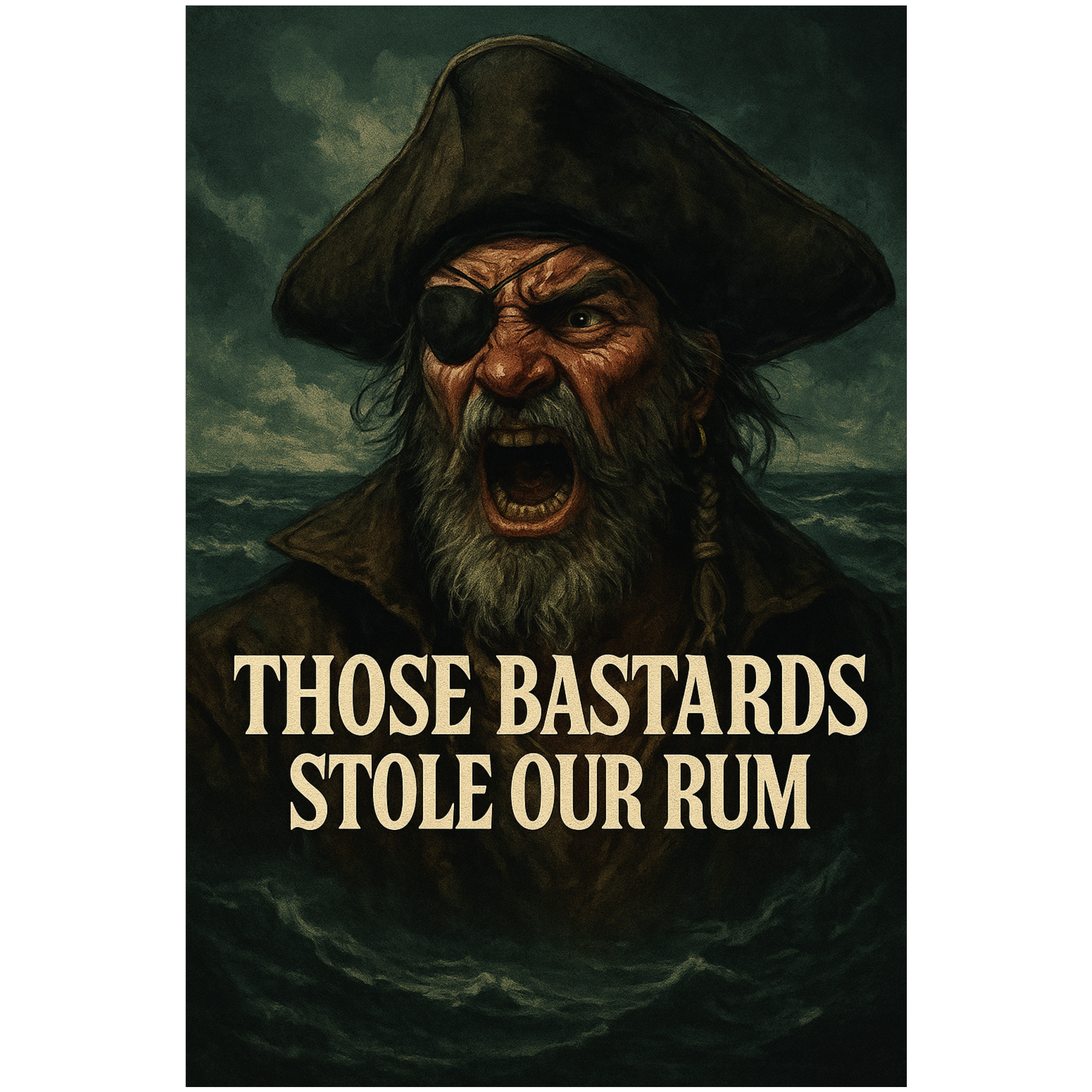 Raucous pirate metal kicks off with thunderous double-kick drums, roaring distorted guitars, and galloping bass lines, Accordions and folk melodies interweave, punctuated by rowdy gang vocal shouts, Sudden violin flourishes add swagger, leading to boisterous, anthemic choruses