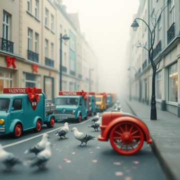 Playful French chanson with female vocals, lightly swinging upright bass and brushed drums, toy piano and accordion trading leads, Verses stay intimate and nimble; chorus blooms with stacked harmonies and wordless backing “la-la” lines, Warm room reverb and a subtle whistle hook keep it whimsical and surreal, chanson