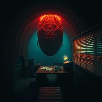 darkwave, trip-hop, 72 BPM, whispered female vocals, fingerpicked electric guitar, sub bass pulse, brushed snare, treated piano motifs, analog tape hiss, spring reverb, muted synth drone, sparse percussion, insectile glitch ticks, minor key melancholy, claustrophobic hush, gradual layering, 1980s studio texture