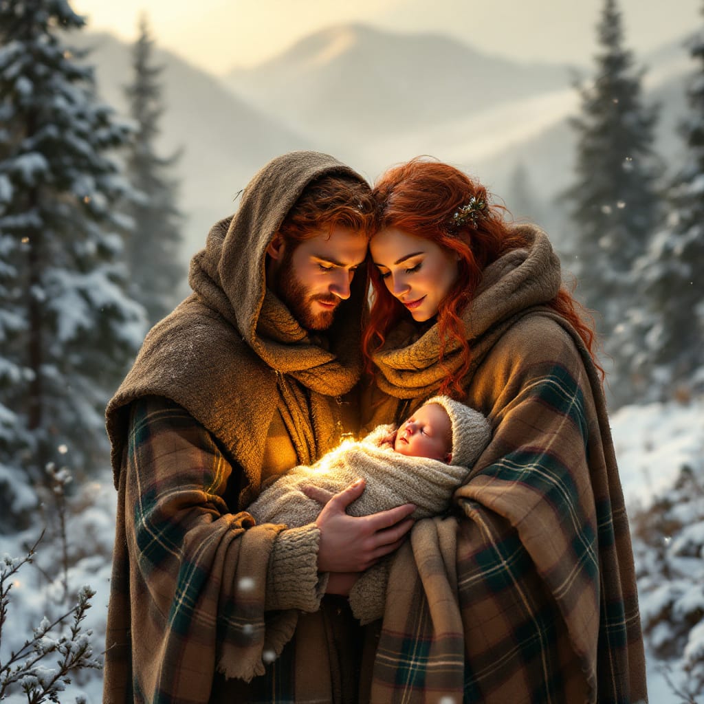 Traditional Highland Christmas carol sung in warm blended voices, Gentle Scotsfolk phrasing with a soft Gaelic lilt, Mixed SATB harmony with steady, hymn-like movement, Light Celtic ornamentation, simple and pure, Soft drone from fiddle or pipes under the voices, Subtle handbells adding winter sparkle, Natural reverb like a small stone chapel in the Highlands, Calm, reverent, and deeply atmospheric