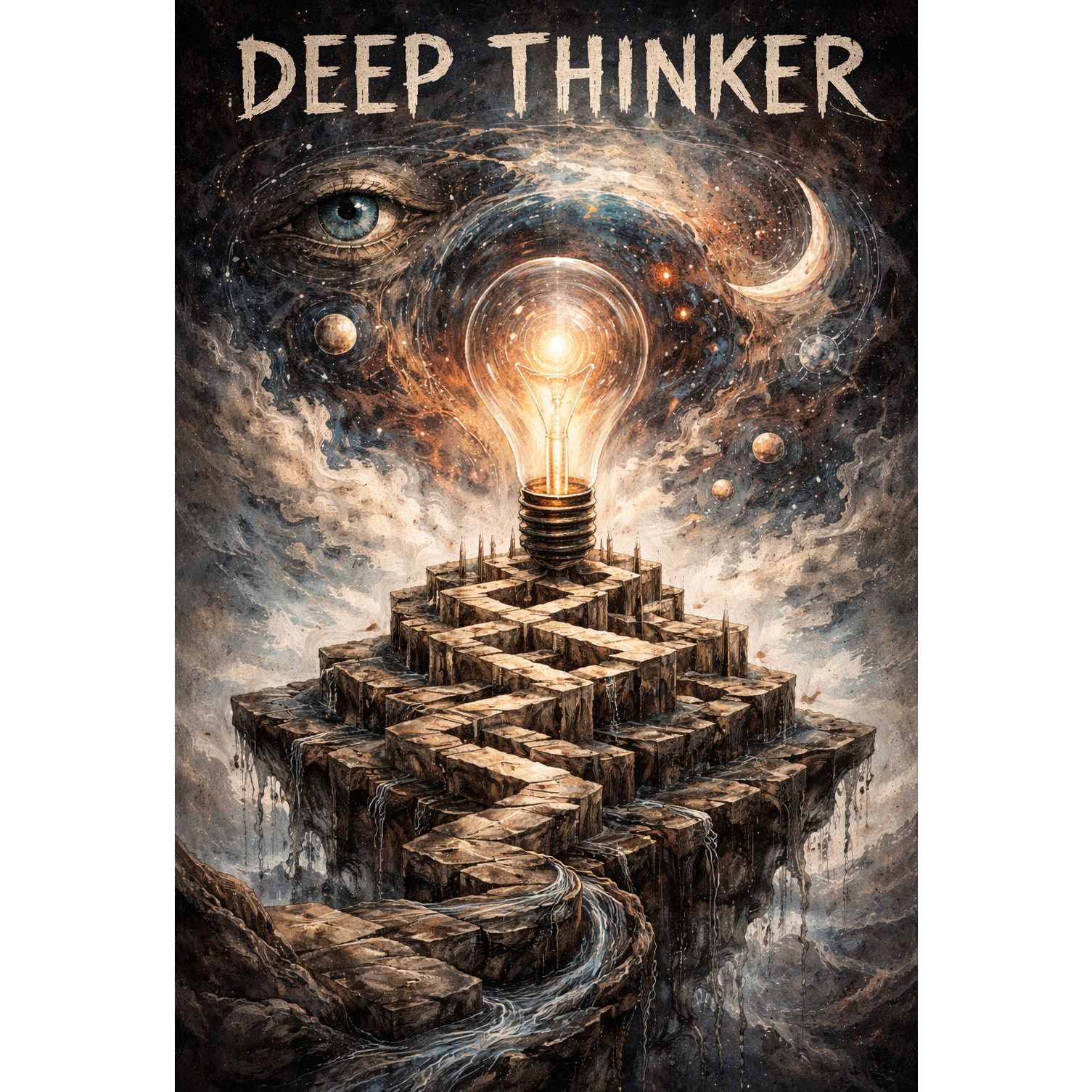 Introspective alternative hip-hop with a strong spoken-word influence, Mid-tempo (around 80–95 BPM), minimalist and atmospheric production with warm, slightly lo-fi beats, subtle piano or pad textures, and restrained percussion, Clear focus on lyrics, leaving plenty of space for the voice and intelligibility, Overall vibe is thoughtful, self-reflective, slightly melancholic but not depressive, Lyrically driven by philosophical streams of thought, meta-reflection on thinking, identity, and inner voices, Vocal delivery is calm and deliberate, shifting between rapped and spoken passages, with dynamic variation from detached narration to emotional peaks, No aggressive battle rap, no mainstream polish — instead honest, raw, cerebral, almost like an internal monologue carried by music