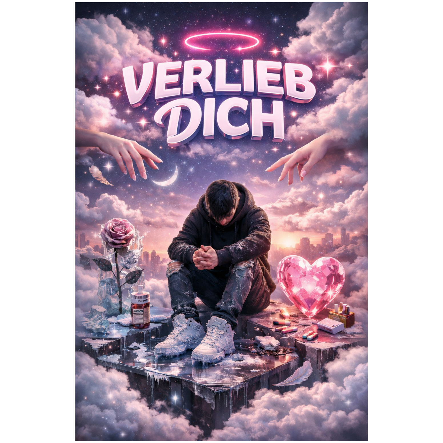 Lush, layered acoustic guitars and airy strings introduce an uplifting landscape, followed by gentle piano and soft percussion, A deep trap beat and subtle 808s pulse through the groove, with hyperpop-inspired vocal chops for lift, The song ends with sparse piano and whispered male harmonies, just male voice
