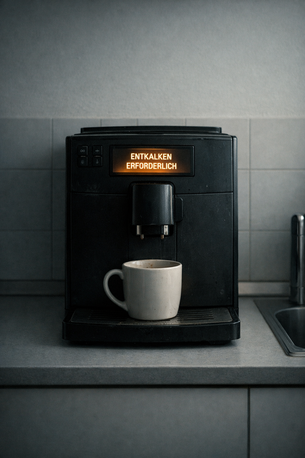 Modern German NDW and Synth-punk song with a 2025 electronic sound, Two raw male punk voices singing alternately and in duet, clear articulation, German vocals with modern effects, spoken-sung style, ironic storytelling, Tempo around 110 BPM, minor key, cool and futuristic mood, Deep sub bass, accentuated punky electric guitar riffs, modern synth pads, clean electronic drums, subtle sidechain, Minimalistic but club-ready production, Verses in an urban and melancholic atmosphere, Bridge in a hopeful, grateful mood, Chorus as a punk shout style, euphoric atmosphere