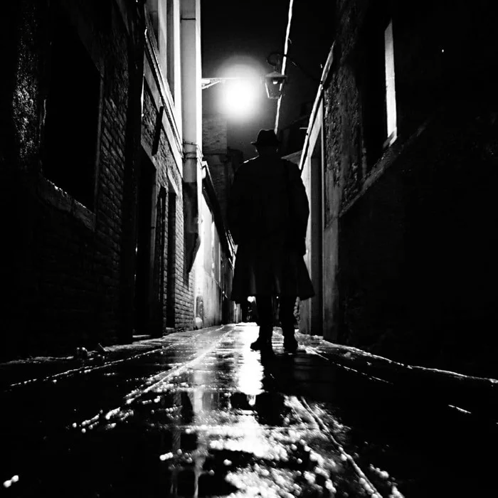 jazz, Slow-burning avant-garde jazz with analog synth beds and sparse expressive trumpet; male vocals in a smoky close-mic, Drums are pointillist taps and soft cymbal swells, clarinet bursts in sharp phrases then vanishes, Tension stays low and coiled, everything gradually strips down to pulsing synth drones, distant city field recordings, and one abrupt dissonant Mellotron note that slices the ending