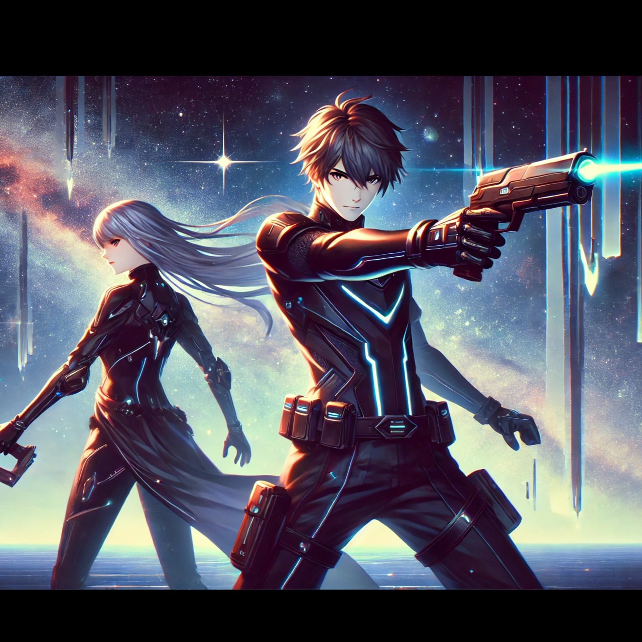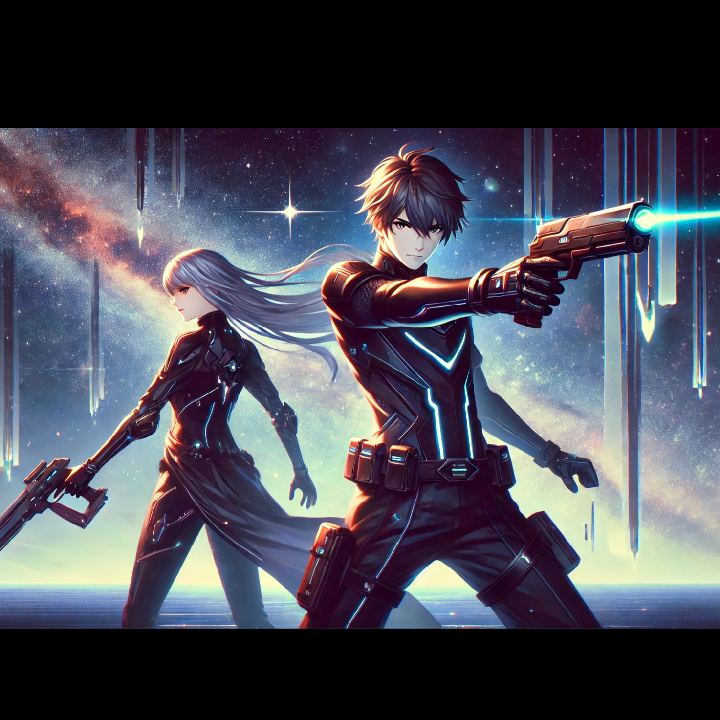 Anime OP, Synth Leads, Bass, Synth Drums, Electric Guitar, Vocoder, anime, Male & Female Duet, Energetic, Euphoric