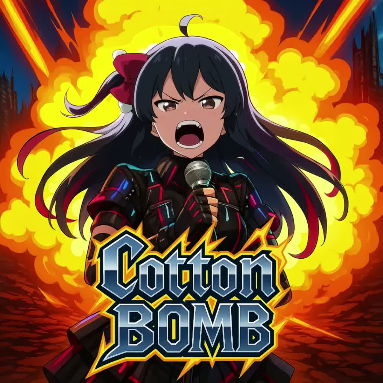 j-pop, idol pop, fast-tempo, electronic, energetic, cute vocal, japanese lyrics, danceable, aggressive, dramatic, funny, happy hardcore, Roaring in with a cyber rock meets hard punk attitude, this high-octane anthem surges with gritty synth bass, distorted guitar riffs, thunderous drums, and explosive buildups, Female vocals soar and snarl over volatile verses, electrifying breakdowns, and an anthemic crowd-shouting chorus, cyber rock, electro rock, energetic, emotional, female vocal, solo, cyberpunk, heroic, fast tempo, hard rock, punk, aggressive, female vocal, high energy, fast tempo, live anthem