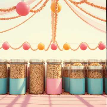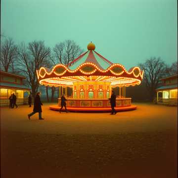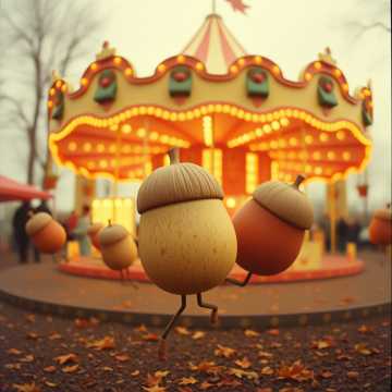 Fun, nostalgic, and festival-ready — evokes roasted-nut aroma, laughter, and fairground charm near a covered bridge