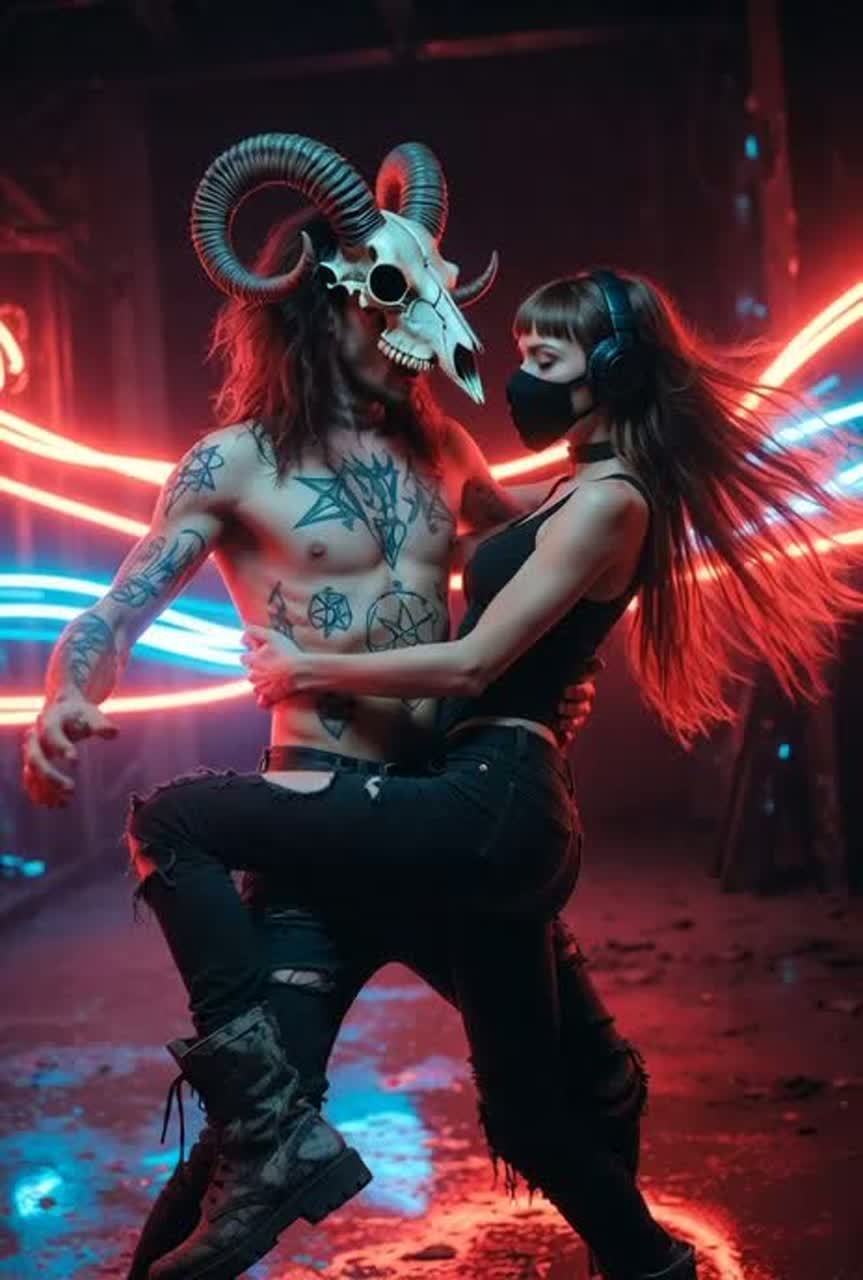 electronic hardcore, glitch, dark techno, industrial dance, heavy bass, bluegrass banjo, Gothic darkwave, edm, deep gravelly southern baritone male vocals, dark, moody, sick beats and and driving bass, sexy and alluring