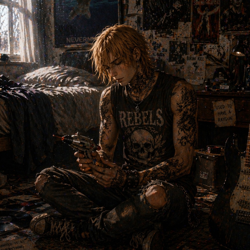 "90s grunge, Nirvana-style, quiet verse loud chorus dynamics, melodic to explosive, Kurt Cobain-style vocals, distorted power chords, punk energy, raw emotional intensity, drop D tuning", male vocals, ‑post-grunge, ‑alternative rock, ‑pop punk, ‑emo