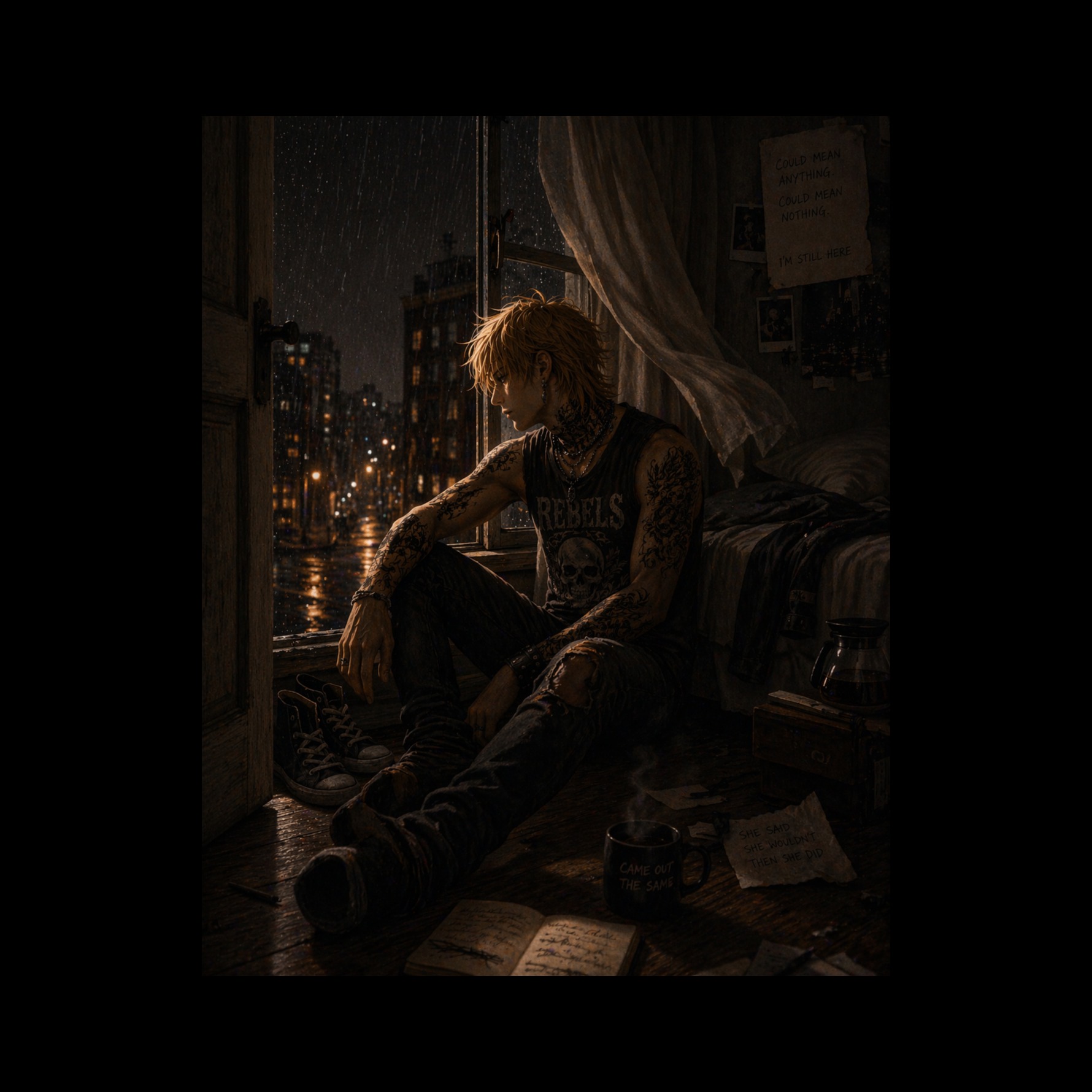 Grunge quiet–LOUD–quiet dynamic, Verses are soft, mumbled, detached male vocals with a slight rasp, clean guitar, minimal drums, and a hollow, empty-room feel, Chorus explodes into loud distorted guitars, fuzz bass, heavy roomy drums, and a strained, emotional Kurt-style male vocal—raw, imperfect, slightly cracking, Keep everything dark, cold, and emotionally numb, with a 90s alt-rock mood, similar to the dynamic shift of Lithium: understated verses → sudden explosive chorus → collapse back to quiet, No pop elements, no modern sheen, no female vocals, no harmonies except subtle double-tracking in the chorus, Maintain a gritty, rain-soaked atmosphere, analog warmth, and garage-like recording texture, Overall feel: haunting isolation, emotional flatline, desperate choruses, grunge authenticity, ‑pop, ‑polished, ‑auto-tune, ‑reverb-heavy, ‑anthemic, ‑arena rock, ‑smooth vocal, ‑over-produced, ‑synth, ‑electronic, ‑bright, ‑uplifting, ‑clean tone chorus, ‑pitch correction, ‑wall of sound, ‑pop, ‑polished, ‑auto-tune, ‑reverb-heavy, ‑anthemic, ‑arena rock, ‑smooth vocal, ‑over-produced, ‑synth, ‑electronic, ‑bright, ‑uplifting, ‑clean tone chorus, ‑pitch correction, ‑wall of sound
