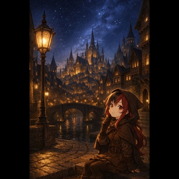 A Japanese anime-style orchestral pop song with a driving tempo of 160 BPM in the key of D minor, The song features a full orchestral arrangement including strings, brass, woodwinds, and percussion, combined with modern pop elements such as a synth bass, drum machine, and electric guitar, The lead vocal is a female soprano with a clear, bright tone, delivering a melodic line with a wide vocal range and expressive dynamics, The song structure follows a typical verse-chorus format with an instrumental bridge and an outro, The production is clean and polished, with a wide stereo image and a balanced mix that highlights the lead vocal and orchestral textures, Reverb is used to create a sense of space, particularly on the strings and vocals, The melody is memorable and uplifting, characterized by soaring phrases and a strong sense of forward motion, The chord progression is primarily diatonic, utilizing common minor key harmonies with occasional major key shifts for emotional impact