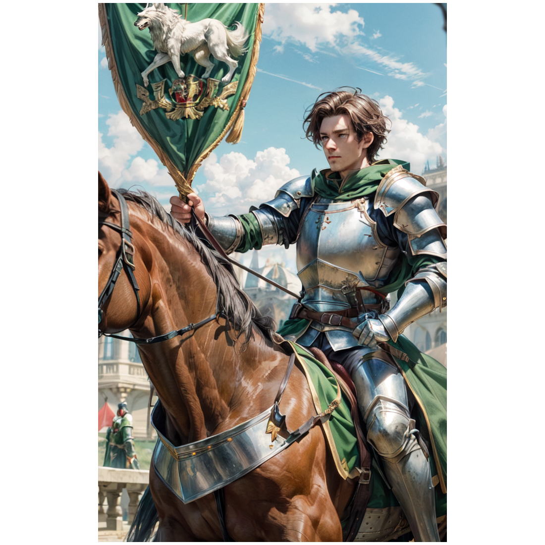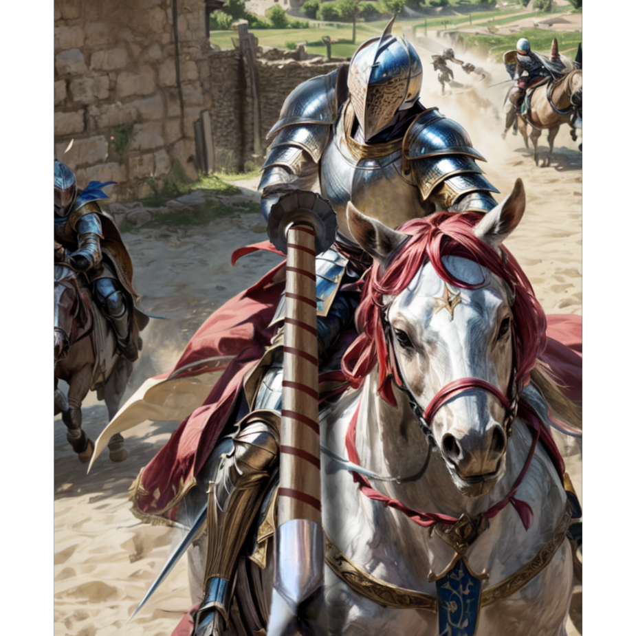 Dark medieval cinematic piece with hurdy-gurdy drone, raw brass horns, and heavy frame drums, Solo male voice only — one clear young Tenor, smooth but strong, calling as if from horseback across a tourney field, No harmonies, no backing vocals, no chorus — the lone voice carries the entire performance, Tone: proud, defiant, poetic, with youthful conviction and ambition, The horns answer him like distant war calls; drums march slow and heavy like hooves, Atmosphere of primal grandeur and youthful arrogance before battle, Tempo: slow, deliberate march that builds toward thunderous proclamation, then fades to stillness