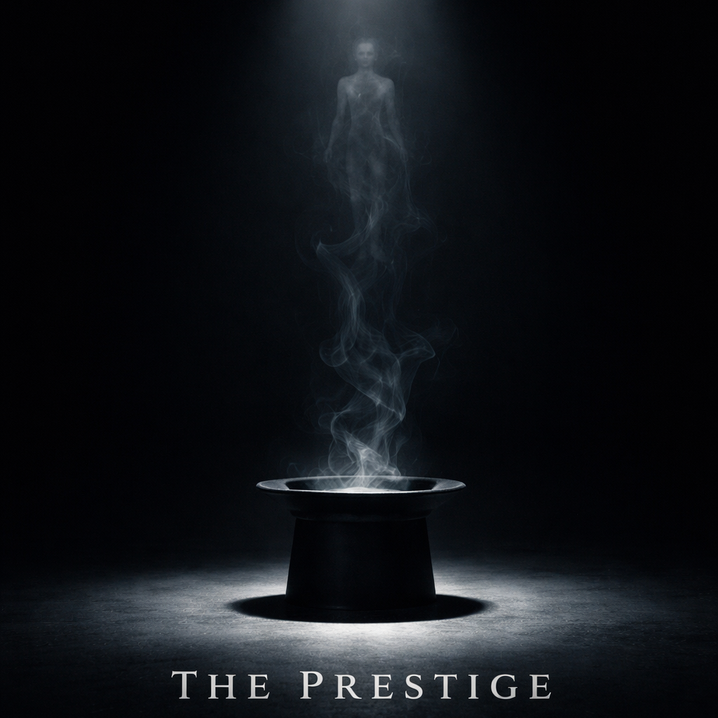 Cinematic, abstract hip-hop/neo-soul instrumental 75 BPM, introspective, dynamic, soulful, ethereal, Intro: distorted, slowed, reversed textures, minimal pads, whispered FX like “Are you watching closely?” Verse1: sparse warm pads, soft piano, minimal percussion, light bass, introspective, space for flexible melodic rap phrasing, Chorus1: lush pads, airy textures, subtle background echoes, light percussion, nostalgic, uplifting, Verse2: darker pads, minor key, layered percussion, low rumbling bass, subtle reversed/panned FX, tension and reflection, Chorus2: heavier minor-key pads, deeper bass, reverb/delay on vocals, thicker textures, echoes of “The Prestige, ” Verse3: sparse cinematic pads/strings, minimal percussion, subdued bass, reflective, FinalChorus/Breakdown: stripped, haunting, reverb-heavy, minimal instruments, faint crowd/applause, fading slowly, Outro: distorted, slowed, reversed reverb, minimal, haunting closure, Overall mood: evolving textures, dynamic contrast, tension