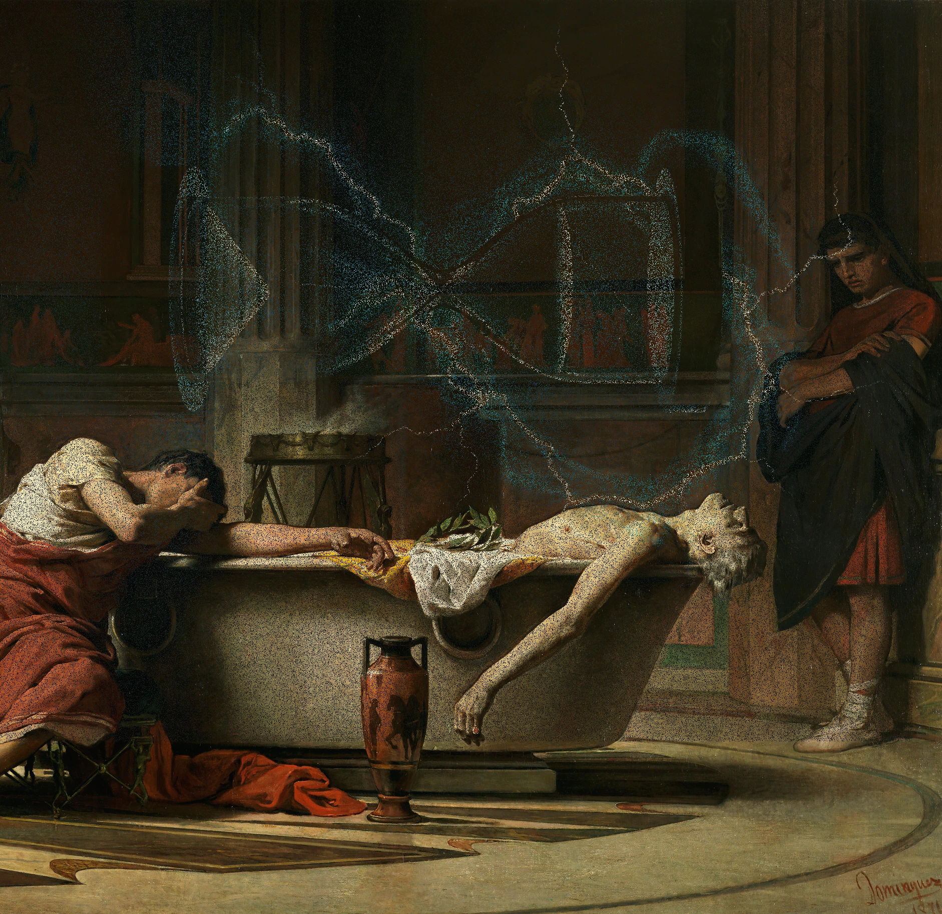 At 500 BPM, homorhythmic harp provides a frenzied, sacred, baroque motif, weaving with virtuosic Paganini-inspired violin lines: Maximal techno rave synths, brutal triplet bass kicks, and sharp stab layers fuel explosive drops, Trap-tinged rap verses punctuate, riding relentless, complex homorhythmic percussion bursts