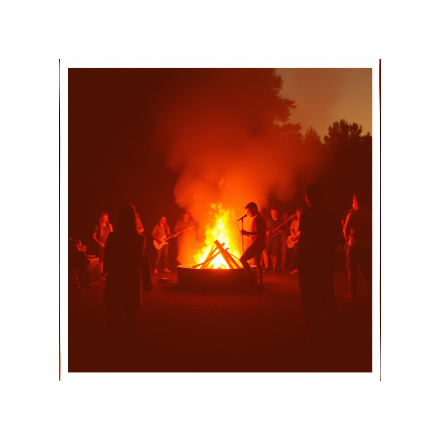 Create a highly textured, complex composition using only four sound elements: (1) deep Alto Europe saxophone playing sustained bass tones at 23Hz, always resonating subtly in the background, (2) a traditional music box providing soft, slightly erotic melodic fragments, distant yet haunting, (3) professional full-whistle melodies and dub variations, sometimes solo, sometimes layered together in harmonies, carrying both playful and emotional tones, (4) continuous campfire sounds crackling as a natural percussive layer, Arrange and reconfigure these four elements throughout the track with evolving intensity: begin minimal and atmospheric, gradually build into layered complexity with overlapping whistle dubs, sax bass grounding the low end, music box weaving fragile yet sensual motifs, and fire providing raw texture, The result should feel hypnotic, ritualistic, emotional, both intimate and cinematic, with shifting arrangements but always limited strictly to these four sonic sources