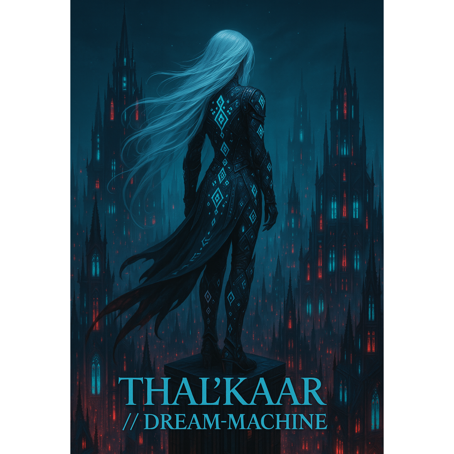 Darkwave-industrial track with cyber-goth energy: 120 BPM, deep, pulsing bass, digital drones, and sharp glitchcore percussion form the backbone, Ritual techno beats interlock with shifting glitch textures and cavernous, reverb-heavy atmospherics, Female Vocals should be low, sharp, resonant delivery, similar to Chelsea Wolfe whispered, and detached in the verses, with ethereal harmonies and breathy power in the chorus, against mythic-machine soundscapes, swelling to haunting, ethereal harmonies and breathy chorus, Layered vocal chops, tension-building ambient build-ups, and noise-soaked breakdowns evoke a futuristic, occult digital cathedral, 3D audio pans ad-libs and cybernetic effects, drenching everything in distorted resonance and mythic-machine ambiance, synth stabs, glitchy synths, russian hardbass, Robotic, vocoder, techno