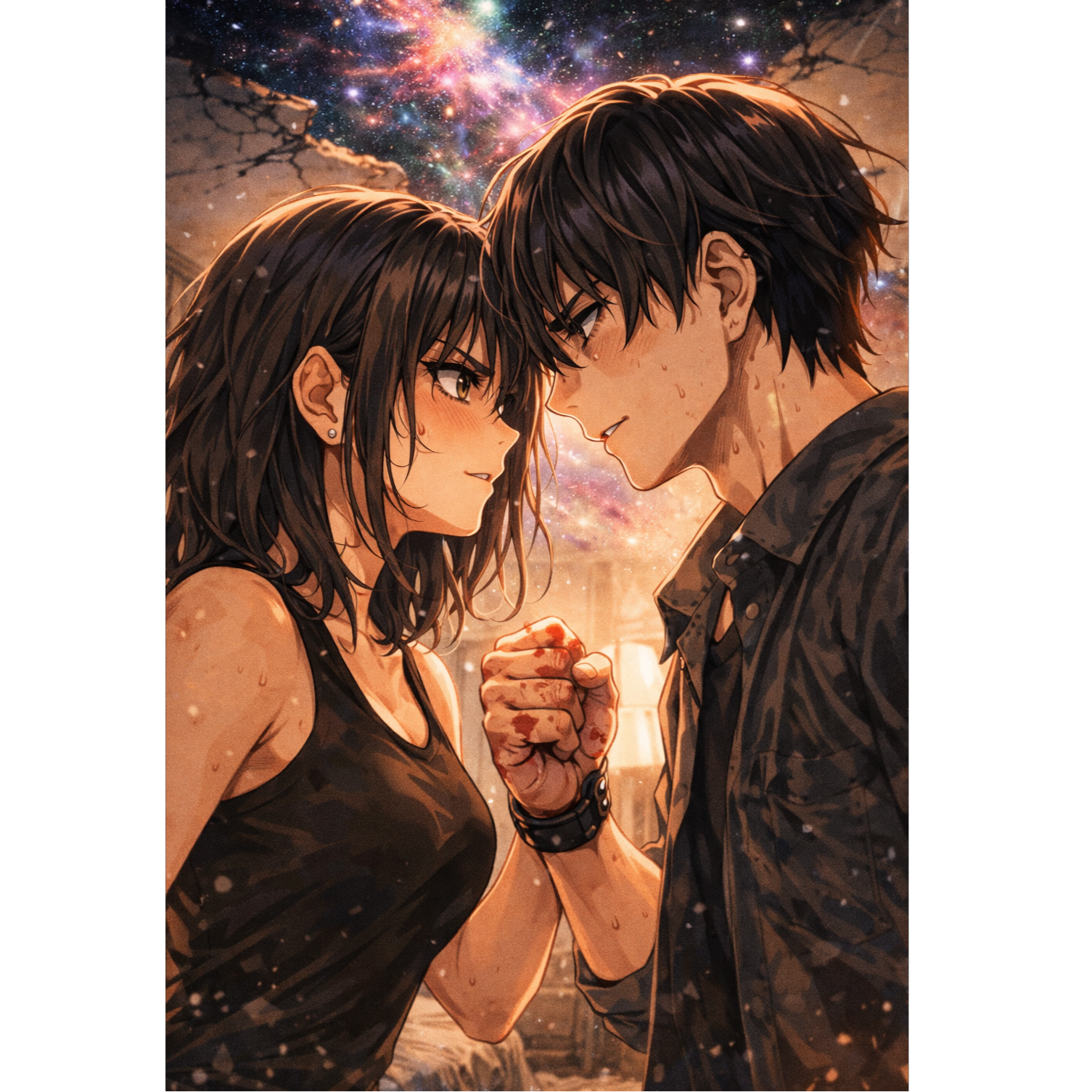 Japanese rock band, daily life rock, fast-tempo, driving energetic, lyrical epic, bittersweet cathartic, emotional love song, electric guitar, clean intro lead, distorted power chords, octave riffs, bass guitar, drum kit, double-time hi-hat, fast snare, crash accents, room ambience, build-up dynamics, female rock vocal, gritty rasp, growled accents, belting chorus, shouted hooks, breathy intimate verse, urgent phrasing