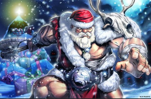 A metal track infused with Christmas vibes launches with heavy distorted guitars riffing on classic holiday melodies, backed by double-kick drumming and a powerful bass, Choral synths and sleigh bells layer in, while guitar harmonies evoke festive energy, An epic breakdown with orchestral brass amplifies the grand, celebratory feel
