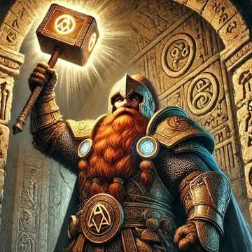 Epic dark Norwegian fantasy metal: roaring distorted guitars with Nordic folk motifs, thundering double-kick drums, and soaring synth choirs set the stage, Verses pulse with tremolo-picked riffs and deep, resonant bass, while choruses explode with massive orchestral layers and operatic vocals, Dramatic breakdowns use ancient flute and chanting, leading to a climactic, relentless outro