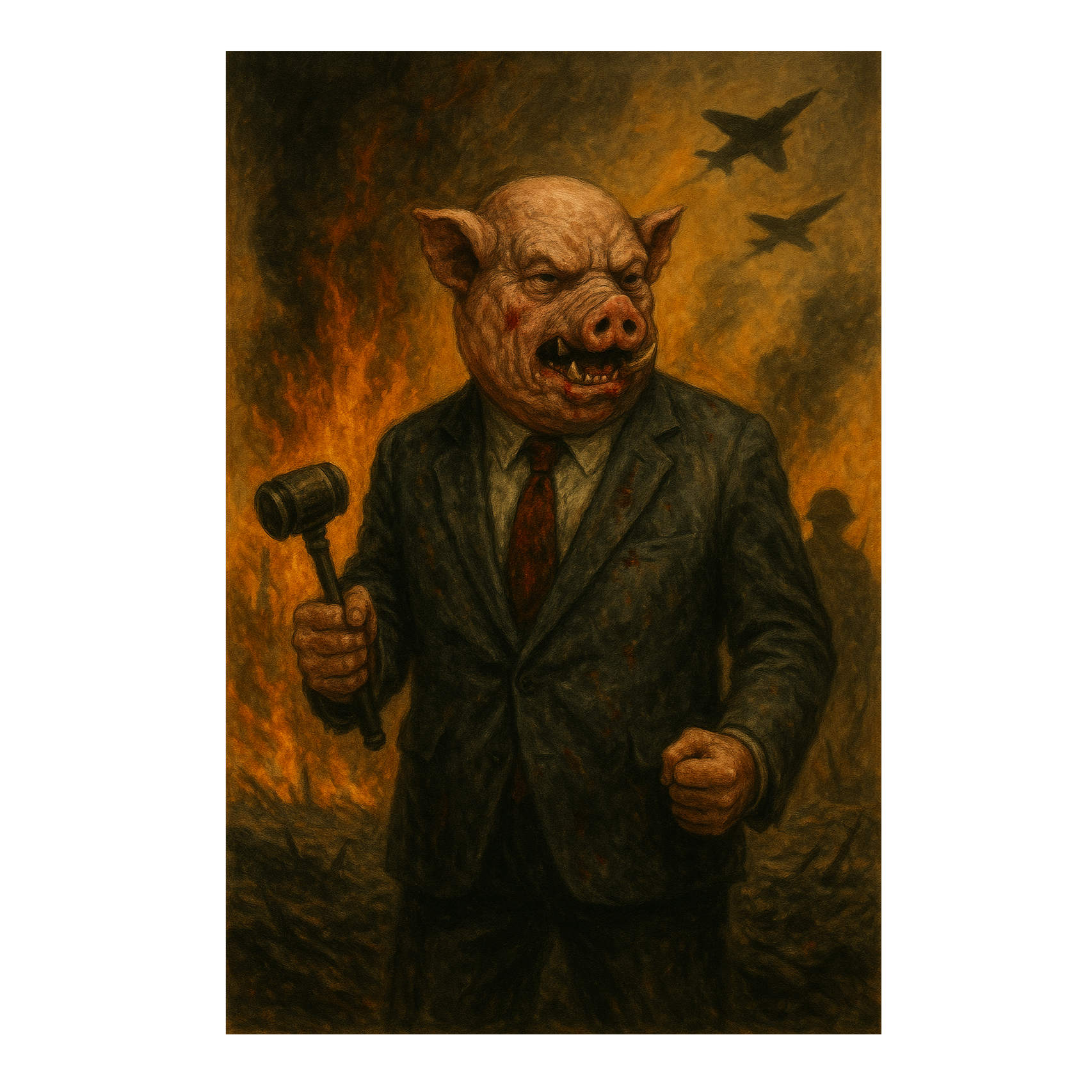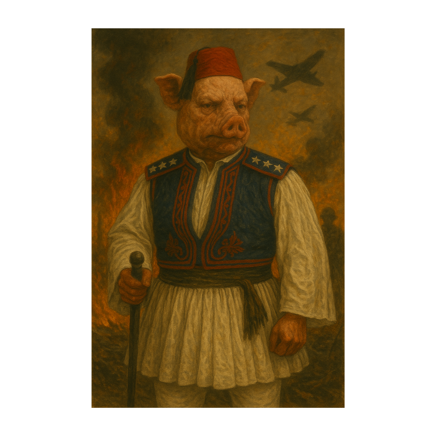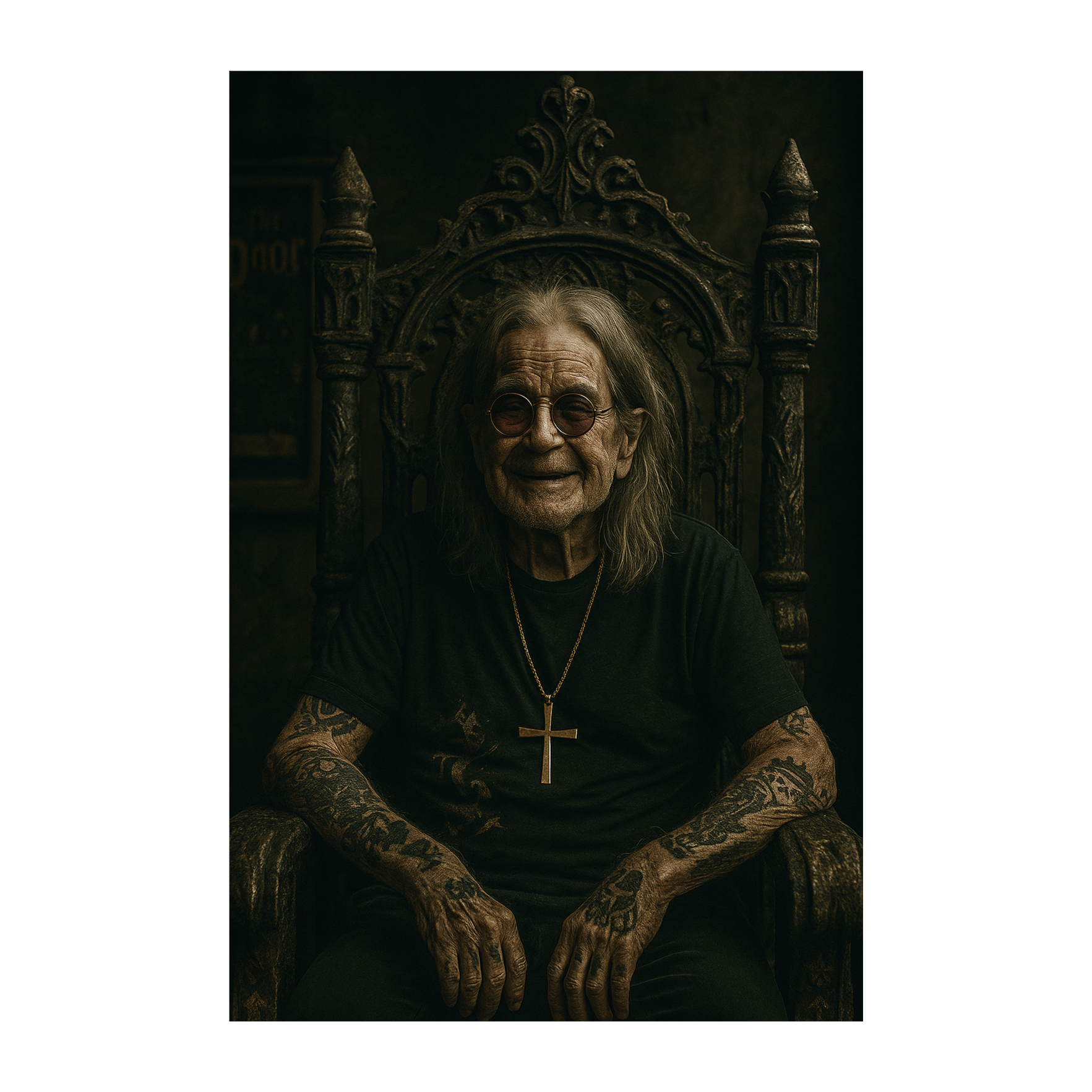 Heavy, 70s proto-metal with dark, fuzzy guitar riffs and doom-laden grooves, Thick, overdriven bass and pounding drums in a mid-tempo, Vocals high-pitched and haunting, with a nasal, wailing tone, dripping with eerie energy, Psychedelic atmosphere, minor scales, and dramatic tempo shifts, Lyrics about mysticism, war, and cosmic dread, Channel the raw energy of early heavy metal with vintage analog tones and sinister vibes