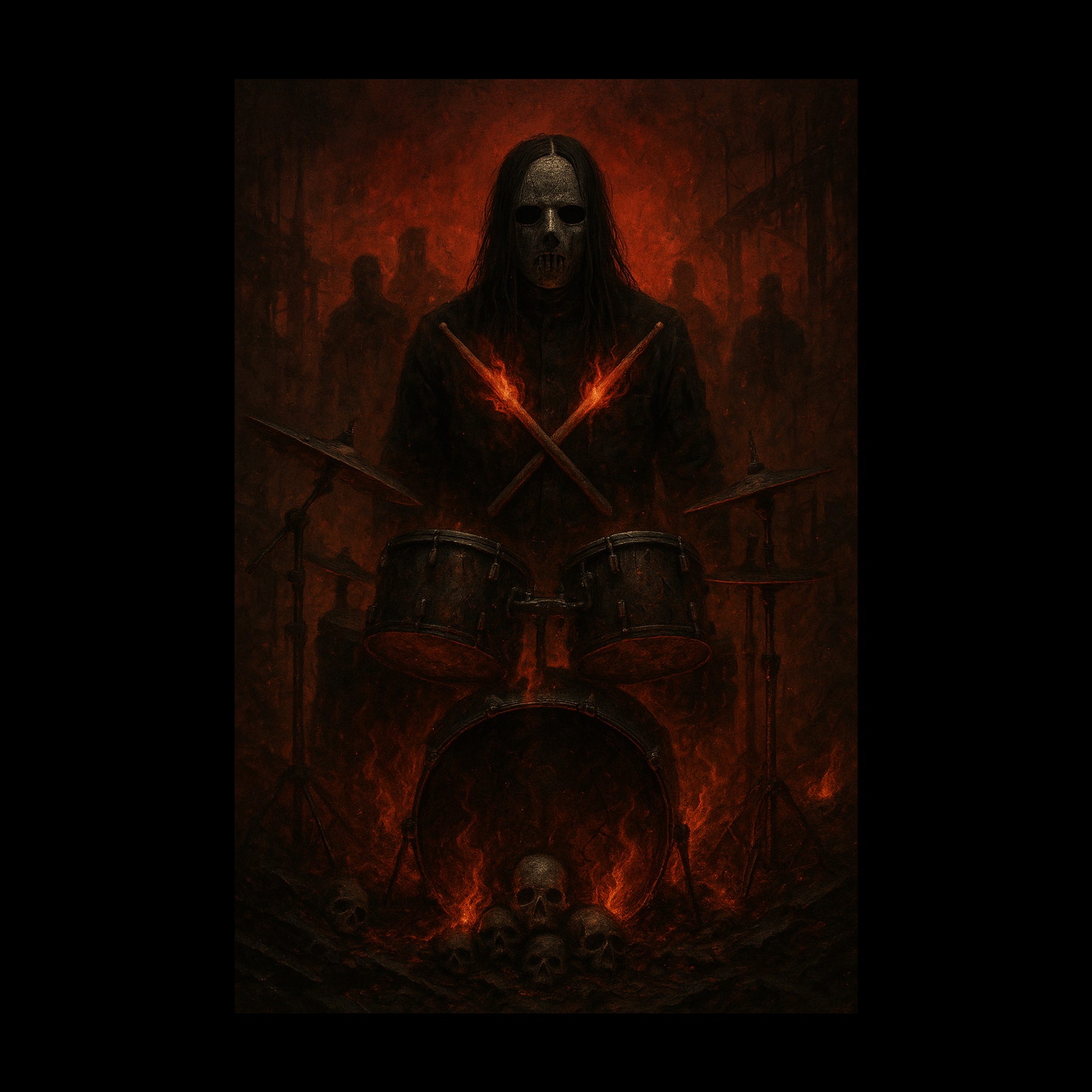 Brutal, chaotic nu-metal with downtuned 7-string guitars, aggressive double-kick drums, tribal tom grooves, heavy turntable scratching, industrial noise layers, eerie samples, and sudden tempo changes, Raw and unpolished production, Inspired by Slipknot’s 1999 debut album — tracks like “(sic), ” “Eyeless, ” “Surfacing, ” and “Spit It Out, ” High tension, constant aggression, controlled chaos, Unhinged vocals that shift between guttural screams, fast-paced rap-style aggression, distorted whispers, and brief melodic clean parts, Tormented, angry, and psychotic delivery, Lyrics about inner demons, nihilism, mental collapse, and violent catharsis, Inspired by Corey Taylor’s vocal style on Slipknot’s first album — intense, emotional, and unpredictable