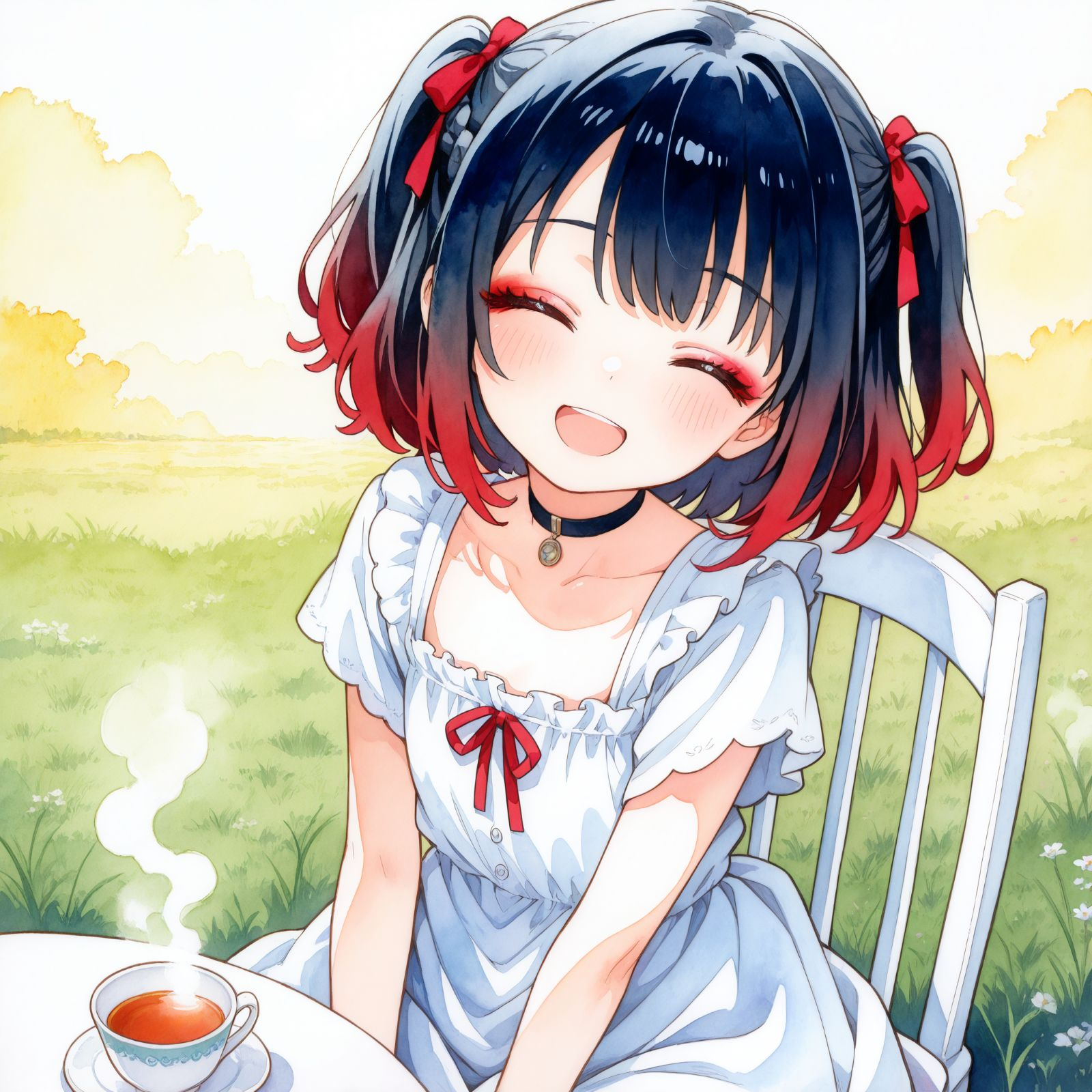 nursery rhyme, anime, A whimsical and sweet track led by two female vocals in harmony, featuring delicate triangle chimes, music box melodies, and a light, playful rhythm, The atmosphere is innocent and dreamy, like a magical tea party in a fairytale, The song incorporates cute, simple scatting sections, creating a feeling of joyful
