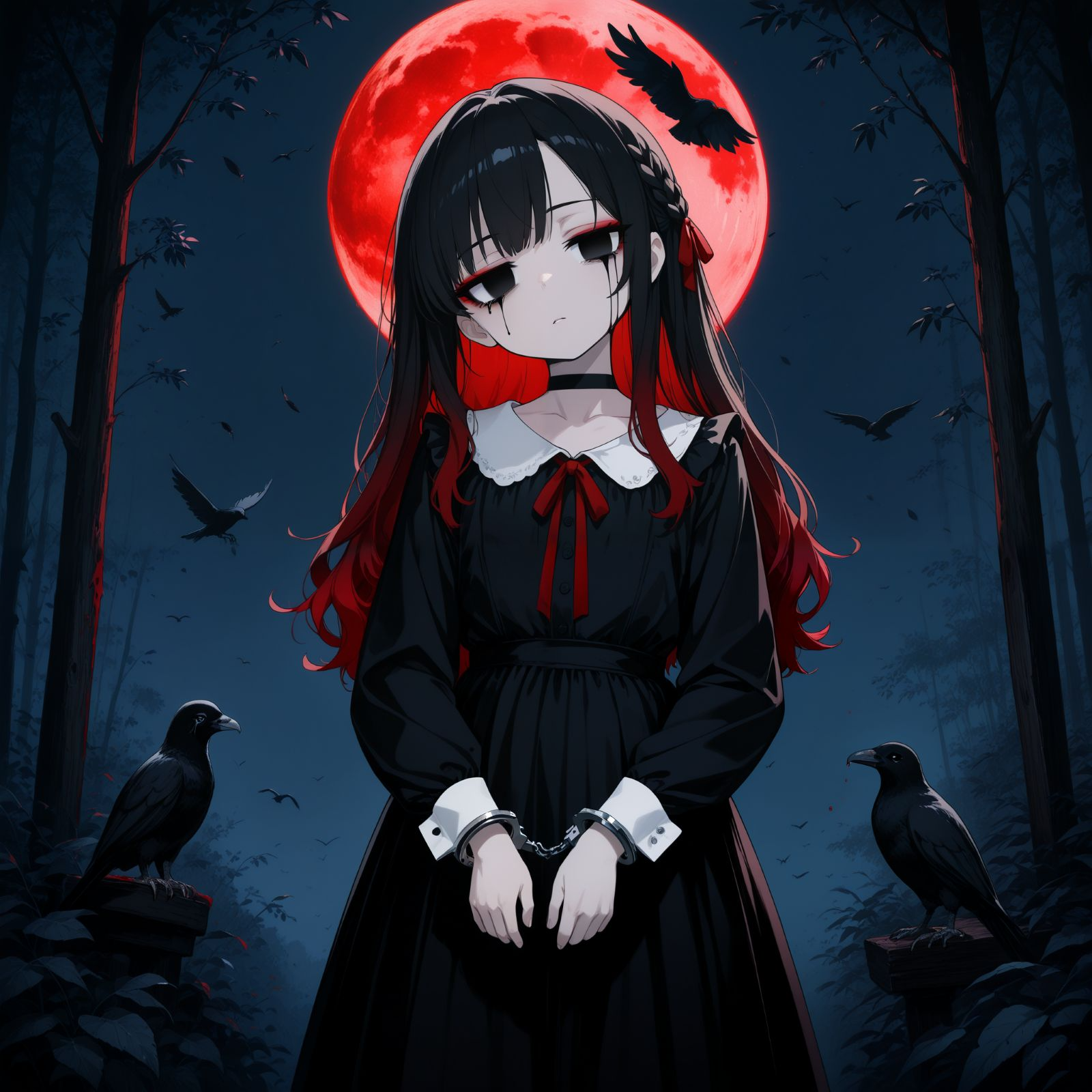 A mid-tempo alternative pop track with a dark, nursery rhyme-like atmosphere, The song blends haunting music box and harpsichord melodies with distorted electric guitars and a driving bassline, The drum pattern is tight and rhythmic, incorporating electronic and glitchy elements, The female vocal is expressive and versatile, shifting from an innocent, almost childlike tone in the verses to a powerful and emotional delivery in the anthemic choruses, The style is reminiscent of a suspenseful anime opening theme