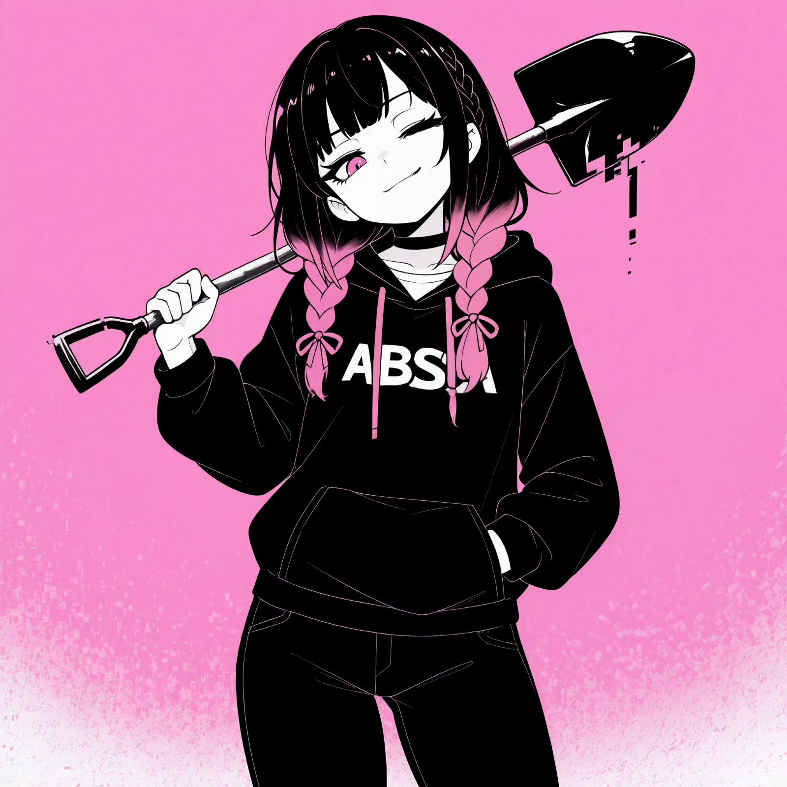 frenetic, mid-tempo big band jazz track, heavily inspired by 1930s cartoon soundtracks, The core is a driving walking bassline and explosive drum rhythms, A powerful brass section with blaring trumpets and slick trombones trades frantic solos with a virtuosic stride piano, The lead vocal is a powerful, sassy, and slightly unhinged female voice, The entire track is processed to have a vintage, 1930s record aesthetic, featuring subtle vinyl crackle, surface noise, and a warm, mono-like mix, The frequency range is slightly limited to emphasize the mid-tones, perfectly mimicking the nostalgic sound of a gramophone playing in a smokey, glamorous, anime-style club