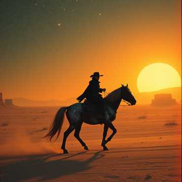 Gritty space‑cowboy blues‑rock with cosmic western atmosphere, Crunchy overdriven guitars, slide‑guitar twang, mid‑tempo outlaw groove (94–102 BPM), Dusty drums with a steady stomp, warm analog tone, subtle spacey reverb, Vocals gritty and confident, half‑storyteller, half‑outlaw prophet, Chorus delivered with echo and light gang‑chant energy, Cinematic cosmic‑frontier vibe with low synth pads and desert‑in‑space ambience