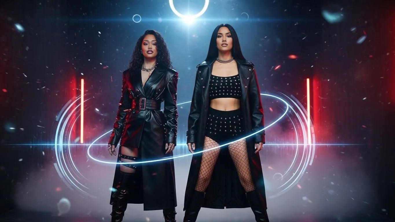 2000s R&B Trio, Groundbreaking Hip-Hop/Trap Fusion, Vocal Profile: Three distinct African American female vocalists, High-contrast vocal textures (Husky Alto, Silky Mid, Piercing Falsetto), Performance: Heavy use of call-and-response, soulful staggered harmonies, and overlapping "chatter" ad-libs, Production: Timbaland-style stutter beat, heavy 808 rumble, wobble bass, Bollywood violin loops, and ancient Egyptian atmospheric scales, Funk, groove, Vibe: Extremely sexy, avant-garde, "bedroom" sensual but hard-hitting, Mix: Echo-heavy reverb on the falsetto layers, dry and intimate on the lead verses, Catchy, legendary hit song structure with a rhythmic choreography breakdown, Mid-tempo, Vocal Style: 3-Part Female Harmony throughout, Every lead line is supported by a tight triad harmony, Texture: Soulful, lush, and stacked, Panning: Voice 1 (Left-Center), Voice 2 (Center), Voice 3 (Right-Center), Arrangement: No solo dry vocals; use constant backing "Oohs, " "Ahhs, " and parallel harmony