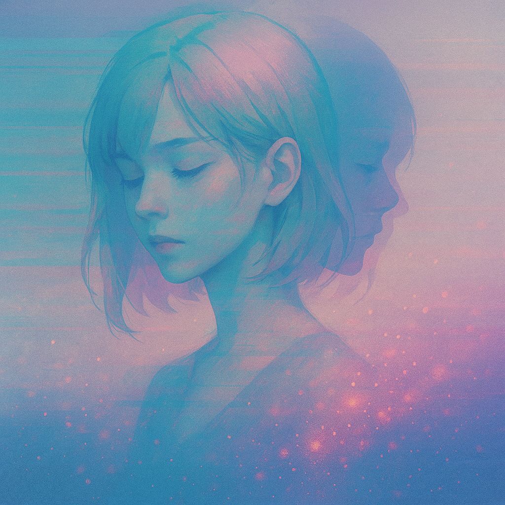 Atmospheric Alternative Rock with dream-gaze texture, Whispered female vocal, rhythmic and intimate, emotional R&B phrasing, Alt-pop rap flow in verses, soft airy tone, Clean delay guitars + wide reverb pad, mellow groove beat (82–88bpm), Gradual intensity rise into chorus, soft distortion accents on guitar and backing vox, not harsh, Warm analog bass, subtle rain ambience low-layered, Chorus expands with shimmering guitars, vocal doubles 10–20% wide, lingering melancholy, floating mood, Bridge strips back to rain + reverb guitar, then final chorus blooms—sad, distant, beautiful, quietly powerful, Dark, reflective, cinematic