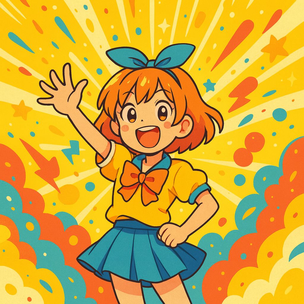anime j-pop, upbeat, cheerful, summery, with electronic synths and light vocals Genre: 80s~90s Heavy Metal / Retro Metal