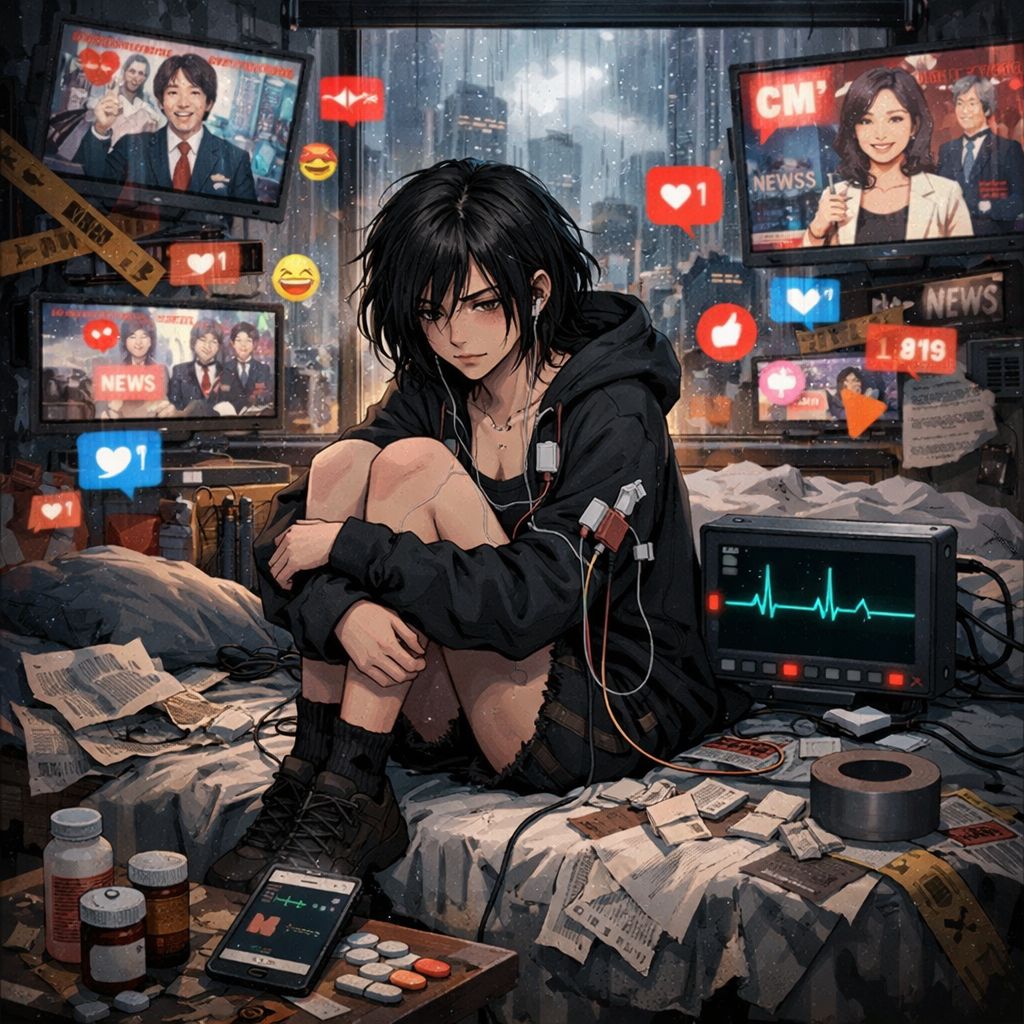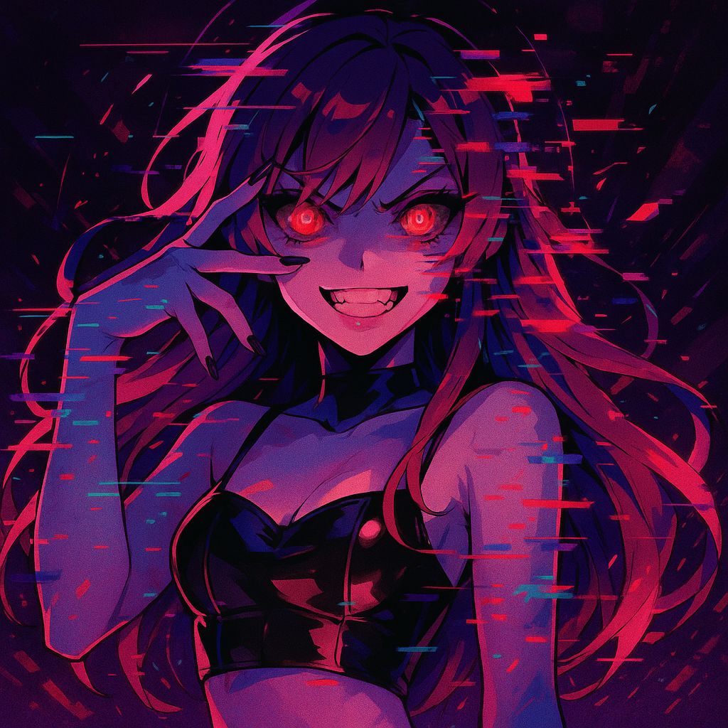 female voice, female vocals, screaming, maniacal laughter, glitchcore, industrial metal, dark electro, insanity, psychosis, cyberpunk, horror, cinematic, anime, inhuman, chaos, distortion, glitch vocals, metal electronic fusion, high bpm, darkwave, psychological breakdown, adrenaline-fueled, techno-metal, distorted guitars, screaming chorus, glitch stutters, heavy bass, atmospheric build, heartbeat motif, dramatic drops, static effects, emotional insanity, corrupted vocals, cybernetic aesthetic, synthetic soundscape, manic energy, distorted percussion, glitch synths, overdrive, psychotic breakdown, pulse distortion, chaotic rhythm, aggressive production, cinematic metal, echo chamber effect, glitch meltdown, manic hook, tempo shifts, echoing screams, electronic metalcore, dystopian vibe, melodic chaos, psychotic beauty, female scream, experimental structure, emotional breakdown, manic laughter outro, intense glitch outro, cinematic glitch finale Genre: 80s~90s Heavy Metal /