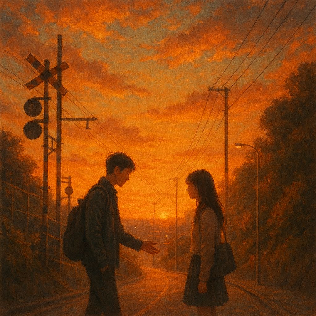 Dream Pop Rock, Shoegaze influence, 130 bpm, Soft but punchy drums with bright airy snares and gentle open hi-hats, Layered chorus guitars forming a wide shimmering wall of sound, with delay trails and smooth reverb blooms, Rhodes piano adds warm nostalgic chords under the mix, Sparkling arpeggios, subtle tape hiss, dreamy atmosphere, Emotional, bittersweet mood — energetic yet melancholic, Sweet female vocal, soft and airy tone, slightly distant in reverb, Light glitch-style vocal chops as texture, Bright, dreamy, floating, Beautiful, youthful, sentimental, starry night feeling