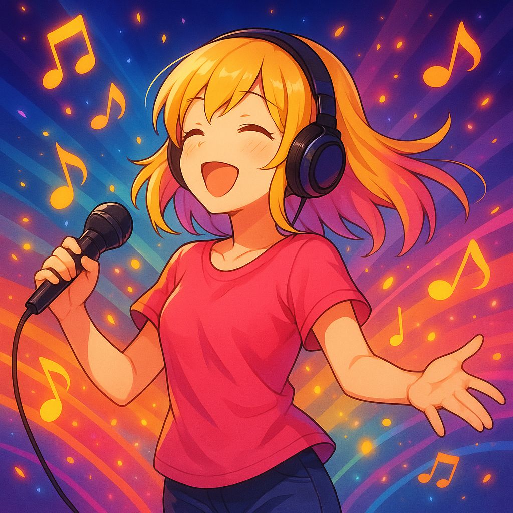 anime j-pop, upbeat, cheerful, summery, with electronic synths and light vocals, female vocals
