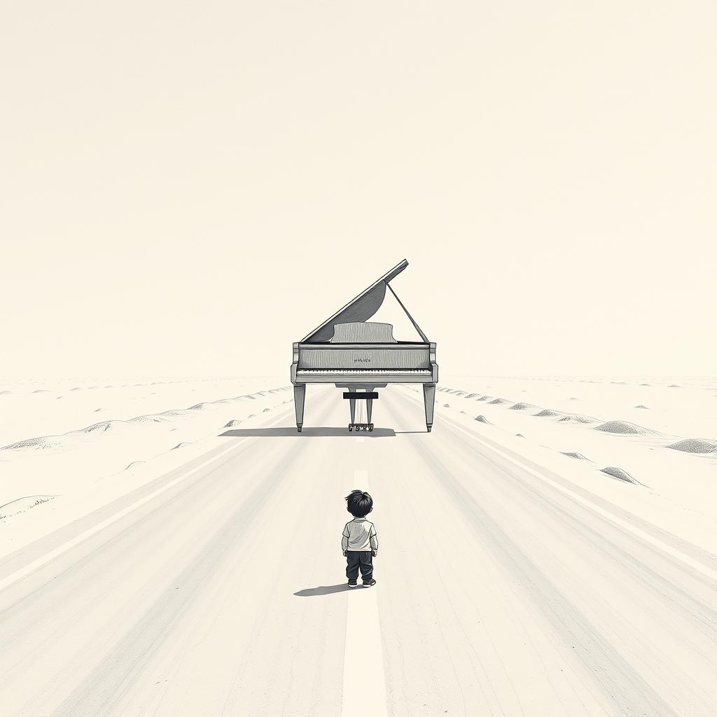 Slow to mid-tempo minor key piano melody, Melancholic and mysterious, not overly emotional, Japanese atmosphere with empty space and silence, Simple but haunting motif that can loop, Modal feeling, slightly unresolved, Minimal left hand, floating right hand melody, Designed to later fit 4-on-the-floor glitch pop or synth pop, Leave space for Uilleann pipes arpeggio and Irish flute countermelody, Sparse piano melody in minor scale, Japanese sense of ma (silence between notes), slow decay, wide reverb, notes hanging in the air, slightly dissonant intervals, quiet and fragile, Rhythmically simple, compatible with straight 4/4 beat, No dramatic climax, No cinematic build-up